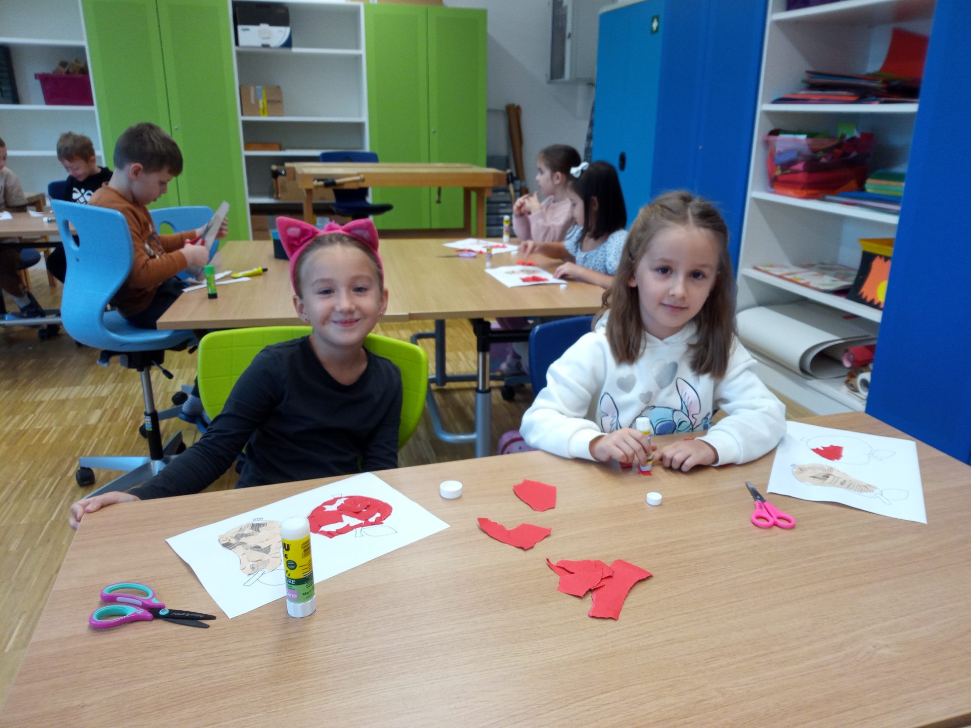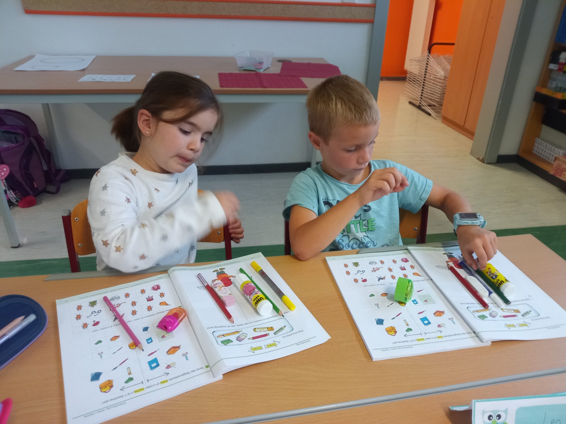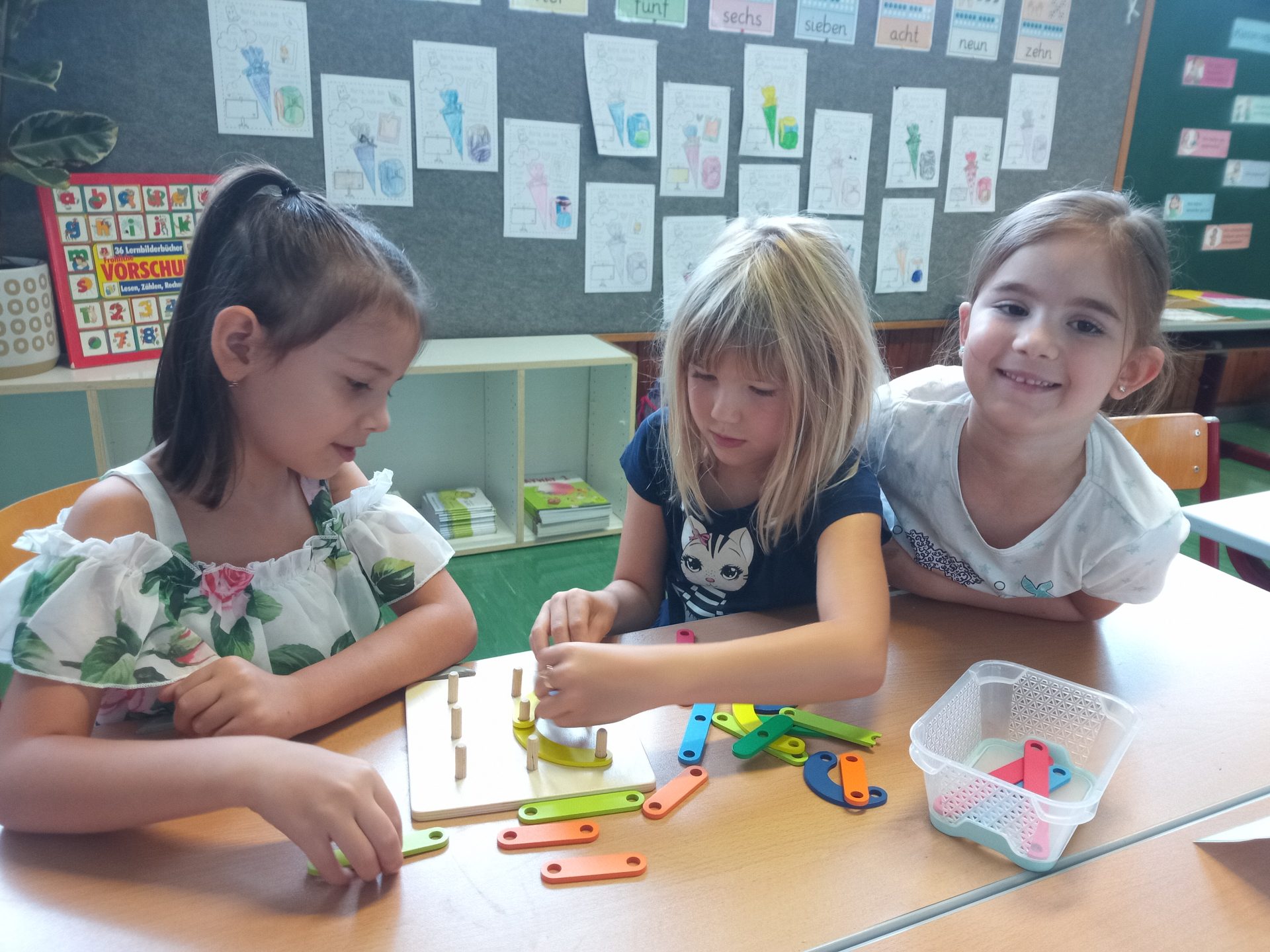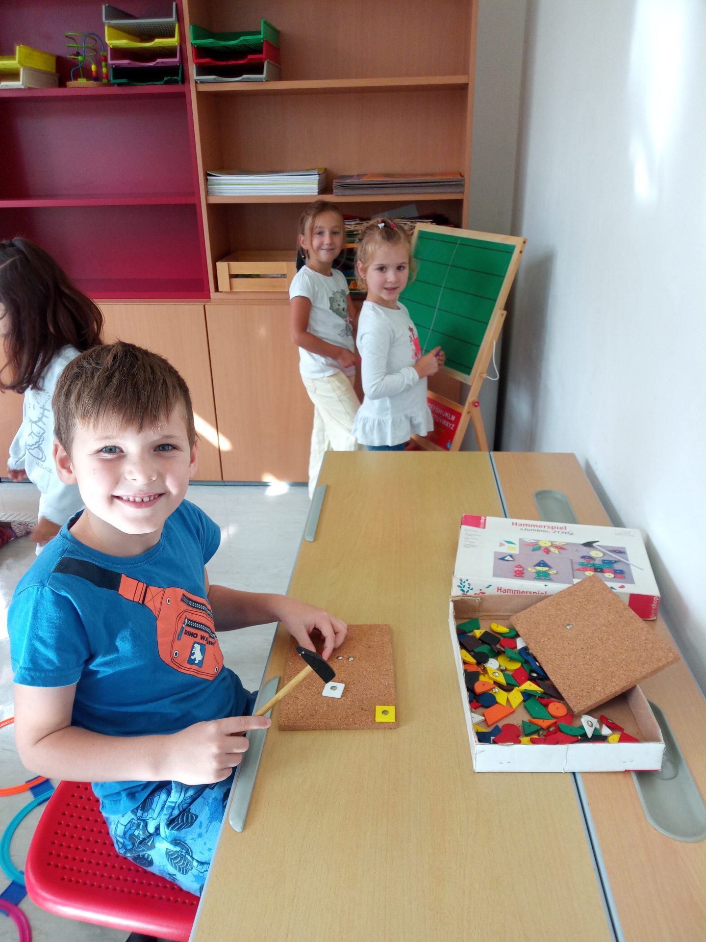 Nach den aufregenden ersten Schultagen haben sich die Kinder der ersten Klasse schon gut in der Volksschule eingelebt. Gemeinsam spielen sie nicht nur in der Pause, sondern lernen auch während der Stunde jeden Tag spielend Neues. Die Kinder setzen sich mit Wörtern und Zahlen auseinander, bewegen sich gerne im Turnsaal, erstellen die ersten Werkstücke im Werkraum oder zeichnen in der Klasse.