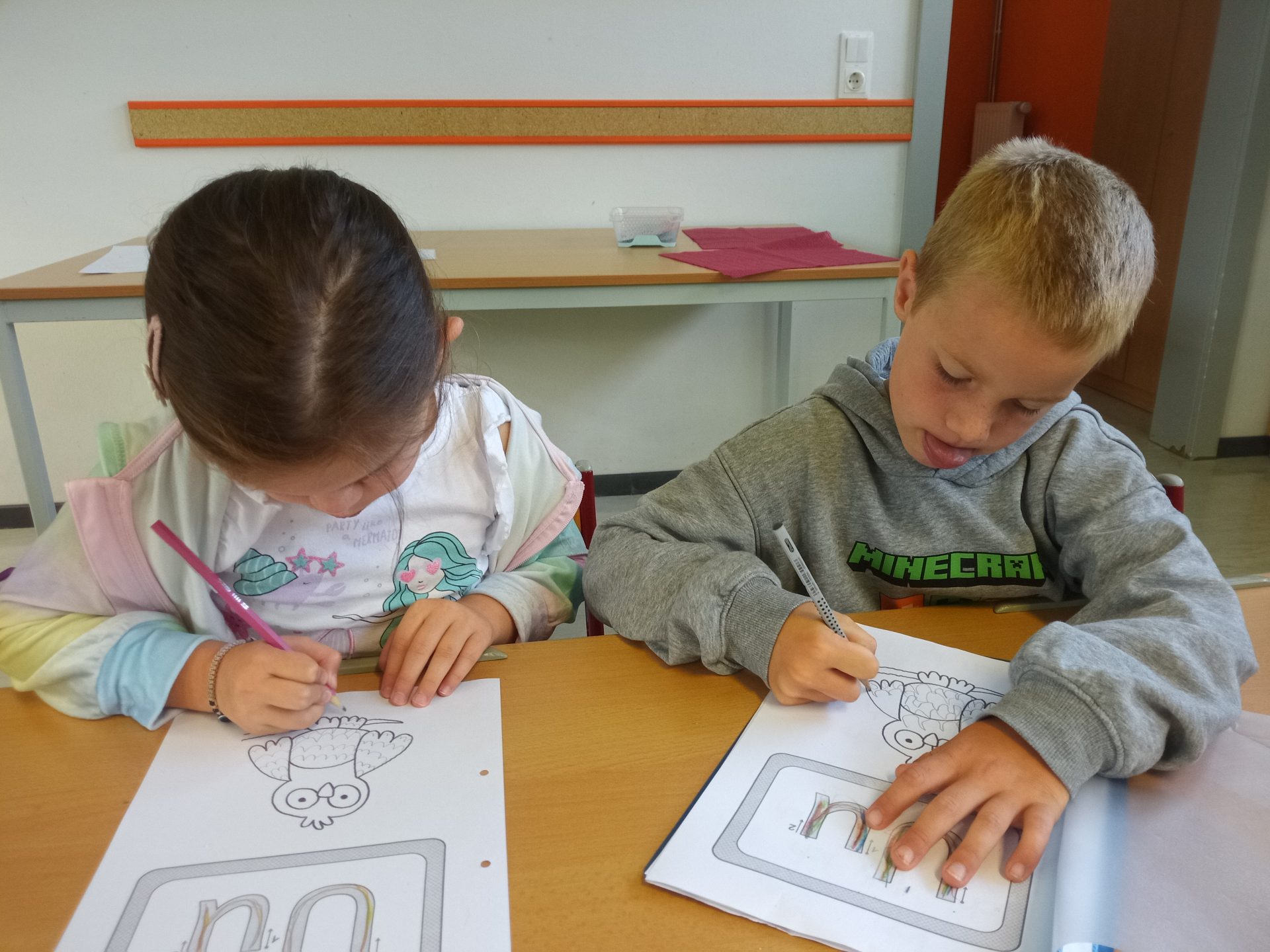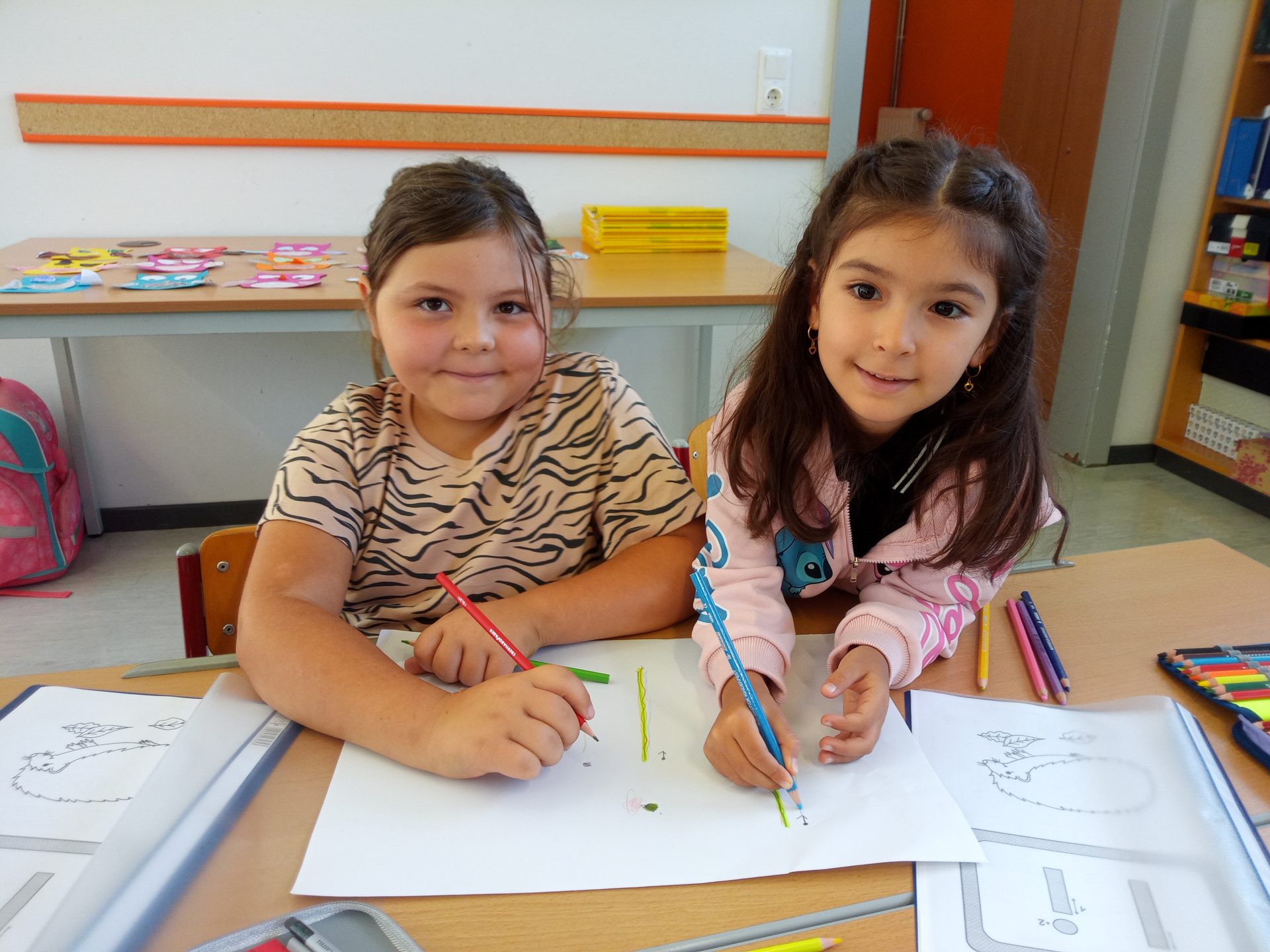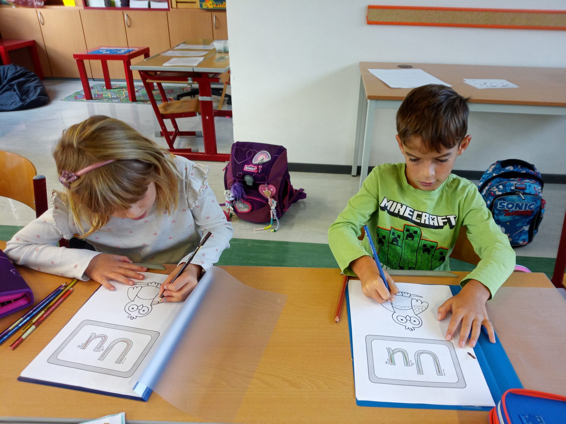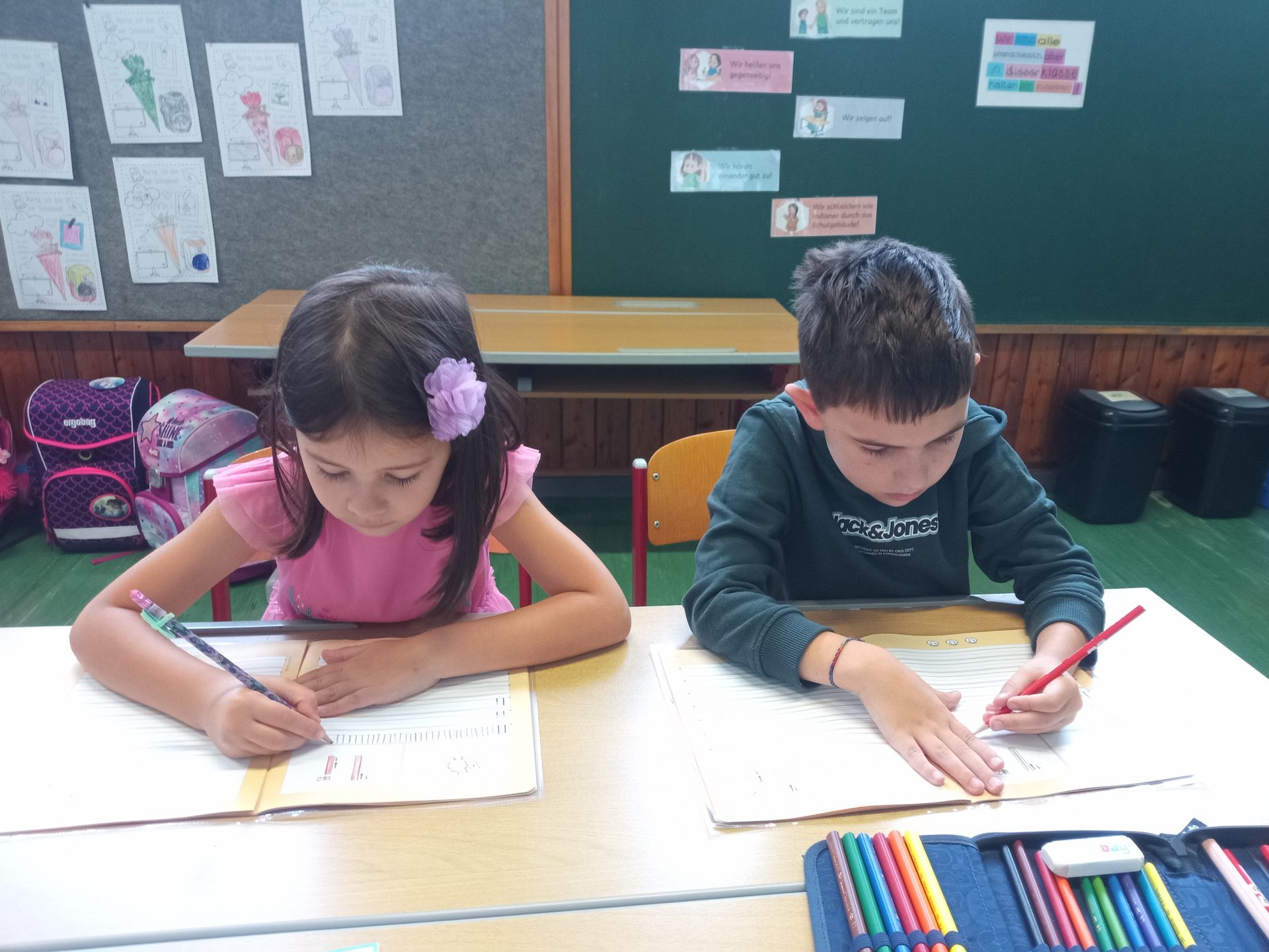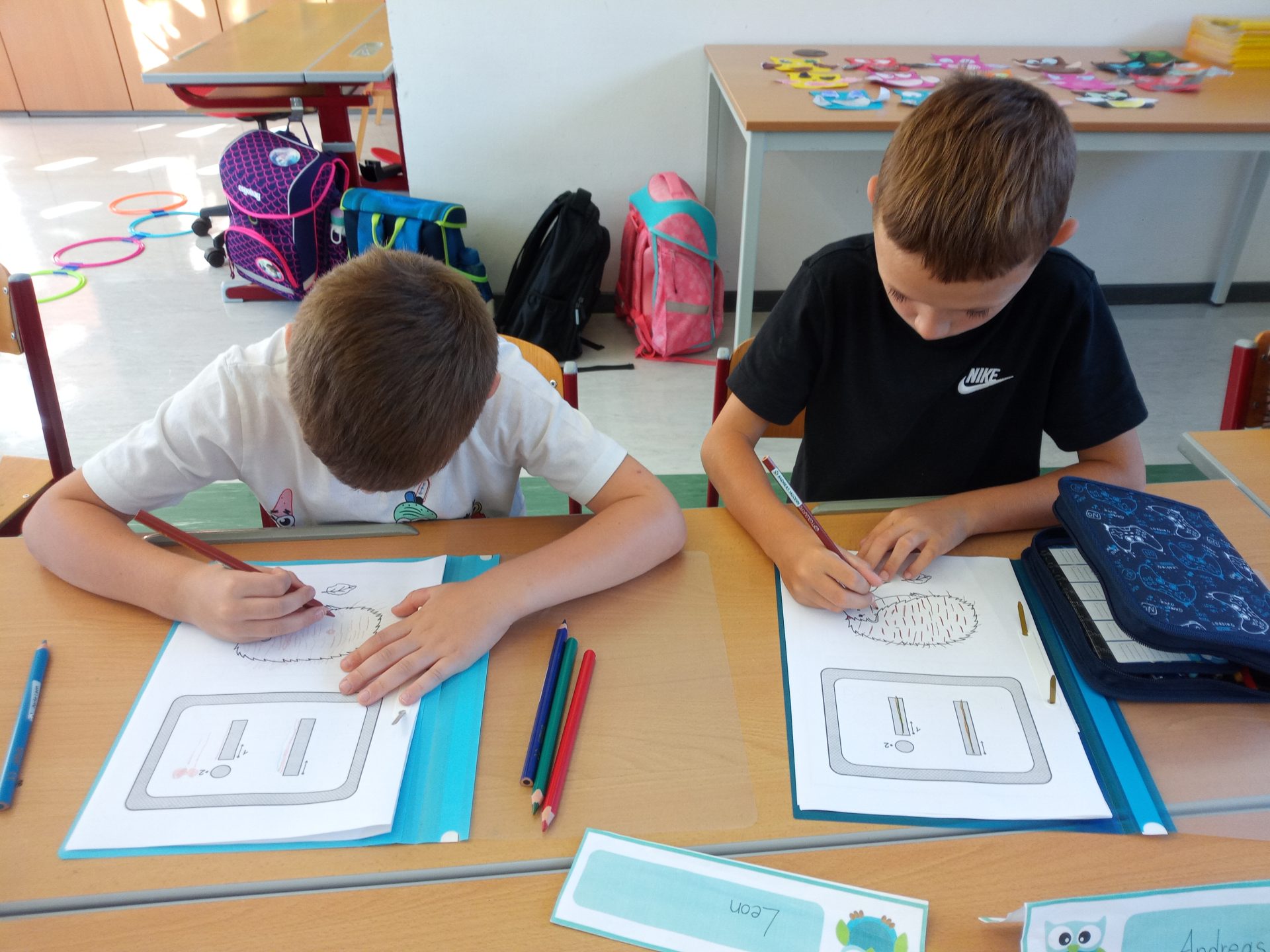 Jede Woche lernen die Kinde der ersten Klasse einen neuen Buchstaben, dabei wird die Schreibrichtung an der Tafel geübt, der Buchstabe mit unterschiedlichen Materialien gelegt, die Grafomotorik geschult, es werden Laute identifiziert, der Buchstabe unter vielen weiteren Buchstaben gefunden, viele Wörter werden in Silben eingeteilt, Puzzles vervollständigt und vieles mehr. Die Aufgaben bei den Stationen am Buchstabentag machen allen Kindern viel Spaß!