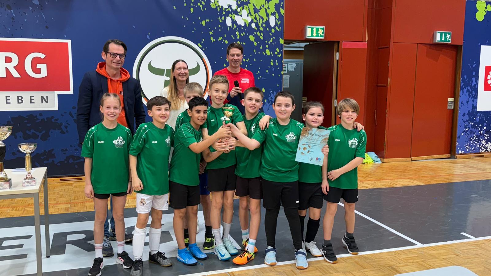 Am Freitag fand ein Volkschul Fußballturnier für Kapfenberg in der Sporthalle Walfersam statt und bot spannende Spiele. Unsere vierten Klassen errangen den dritten Platz, während die dritten Klassen mit viel Einsatz den zweiten Platz belegten. Beide Mannschaften zeigten beeindruckenden Teamgeist und großen Sportsgeist. Obwohl der erste Platz nicht erreicht wurde, war der Tag ein voller Erfolg.