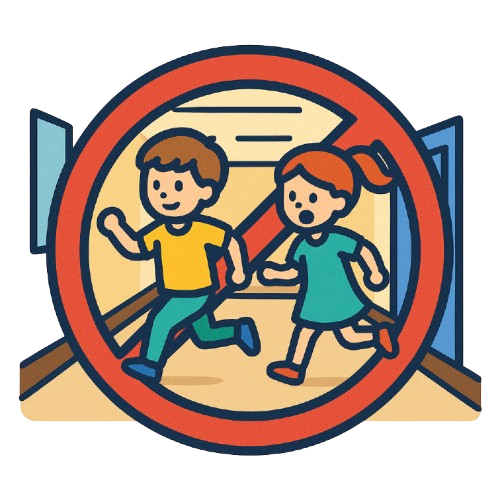 Der Aufenthalt in den Gängen ist nur unter Aufsicht erlaubt. Laufen in Gängen ist verboten.